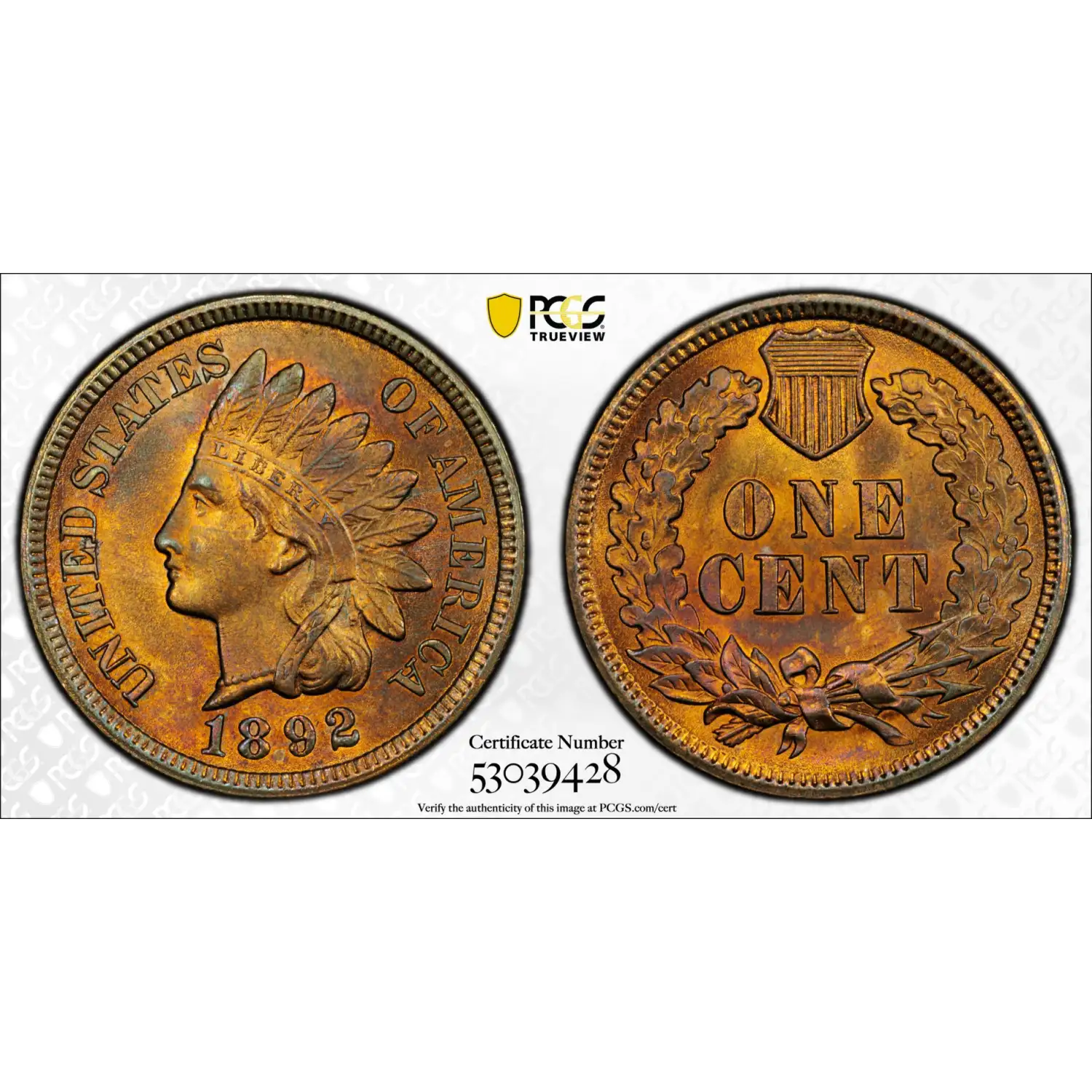 1892 Small Cents Indian Head PCGS MS-64 RB