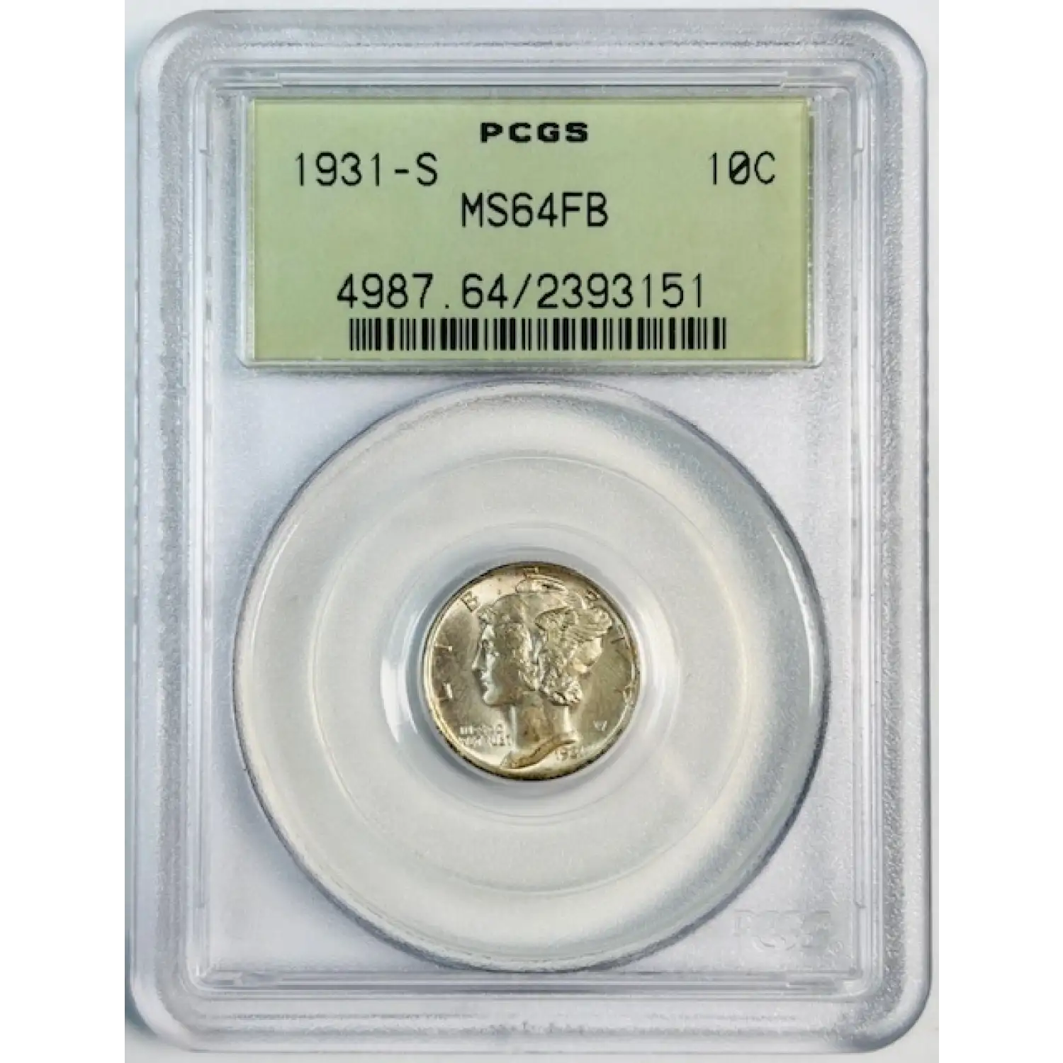 1931-S Mercury Dime PCGS MS-64 FB Old Green Holder