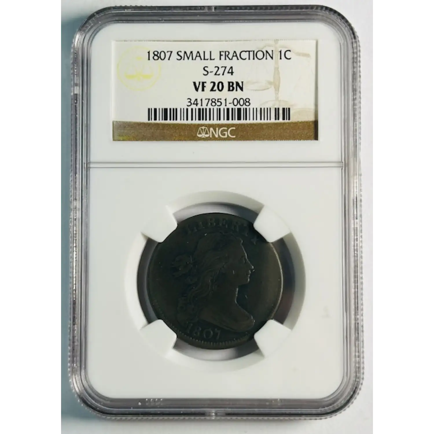 1807 Large Cents Draped Bust NGC VF-20 BN S-274-RARE!
