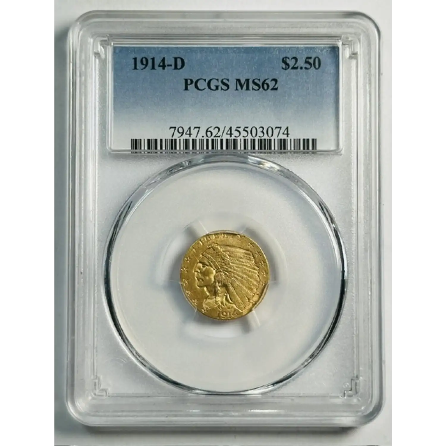 1914-D Gold Quarter Eagles $2 1/2 Indian Head PCGS MS-62 Key Date