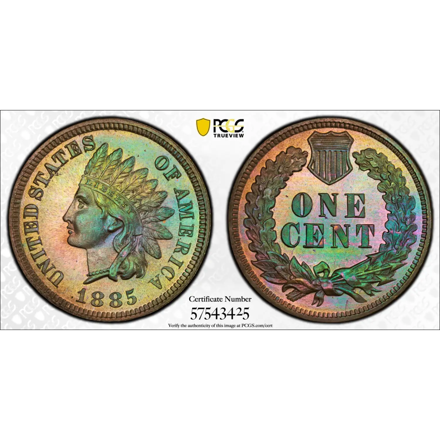 1885 Small Cents Indian Head PCGS PR-66+ BN AMAZING RAINBOW TONED- PROOF
