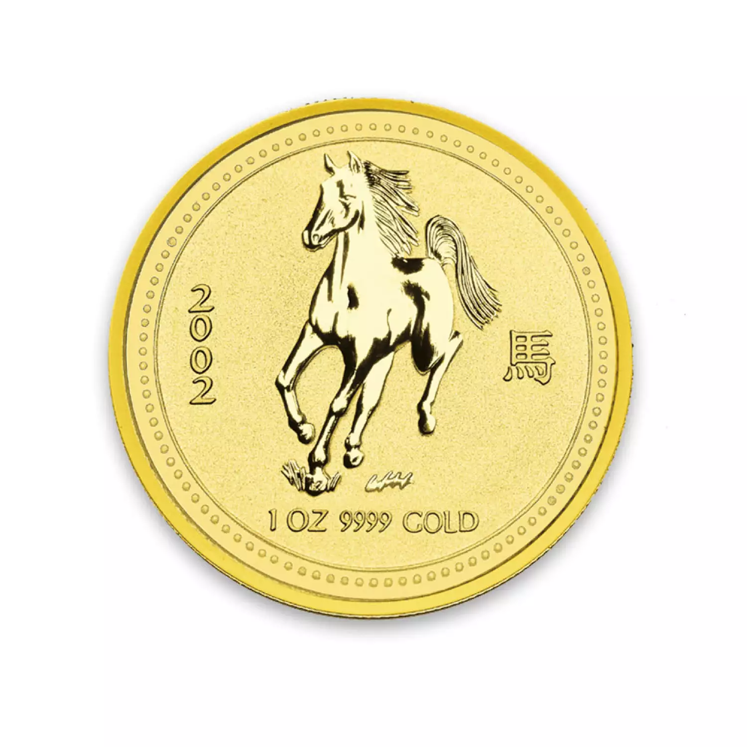 Commemorating the Chinese Lunar Year of the Horse, the Perth Mint minted the striking 2002 1 oz Australian Perth Mint Gold Lunar: Year of the Horse coin.