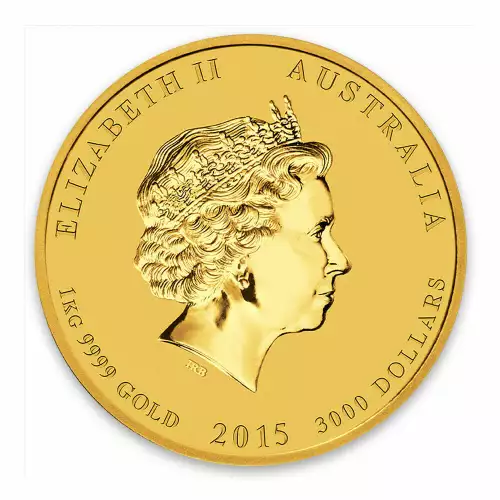 The 2015 1kg Australian Perth Mint Gold Lunar II: Year of the Goat is the 8th coin of the popular Lunar Series featuring an adult male goat standing on top of a mountain, looking into the distance. This bullion coin is composed of 1kg of .999 fine Gold and is guaranteed by the Federal Government of Australia.