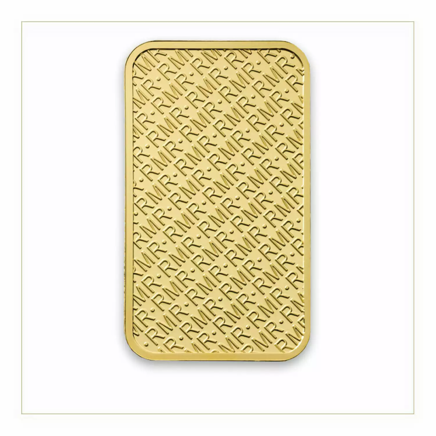 The 1 oz Royal Mint Refinery Minted Gold Bar contains 1 troy ounce of .9999 gold, ideal for those looking to build an easily divisible portfolio.
