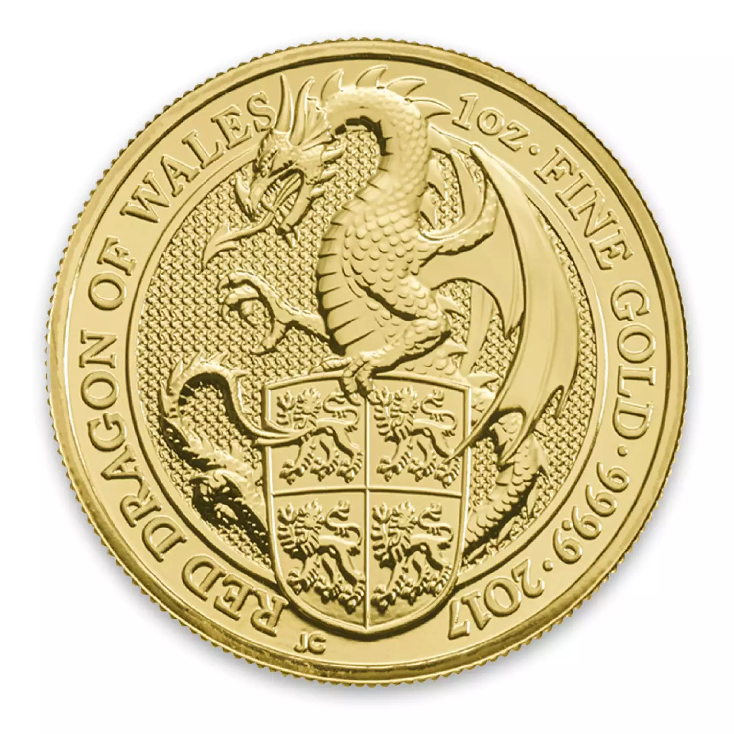 The 1 oz 2017 Britain Queen's Beasts: The Dragon is made of .9999 fine gold and weighs 1 Troy oz. This is the third release in the Queens Beast Series and issued a face value of 100 (GBP) by the British government.