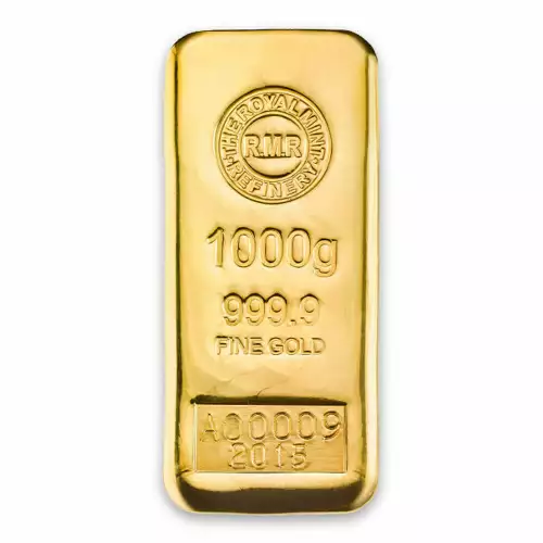 The 1kg Royal Mint Refinery Cast Gold Bar contains 1 kilogram of .9999 gold, ideal for those looking to build an easily divisible portfolio.